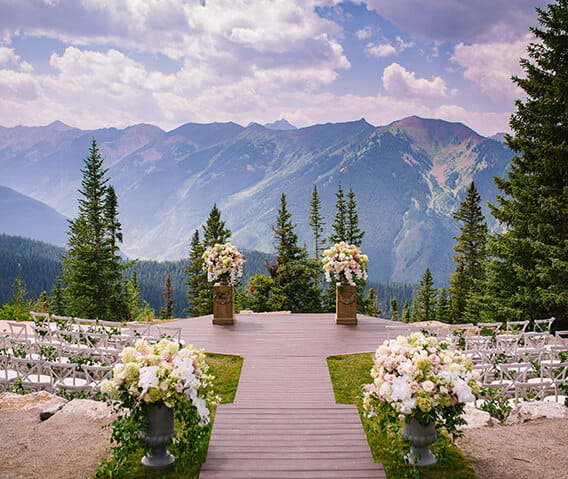 A top Aspen wedding venue means the BEST reception spaces. Outdoor wedding ceremony location. This ski resort town has just over 7000 people but is a year-round destination area.